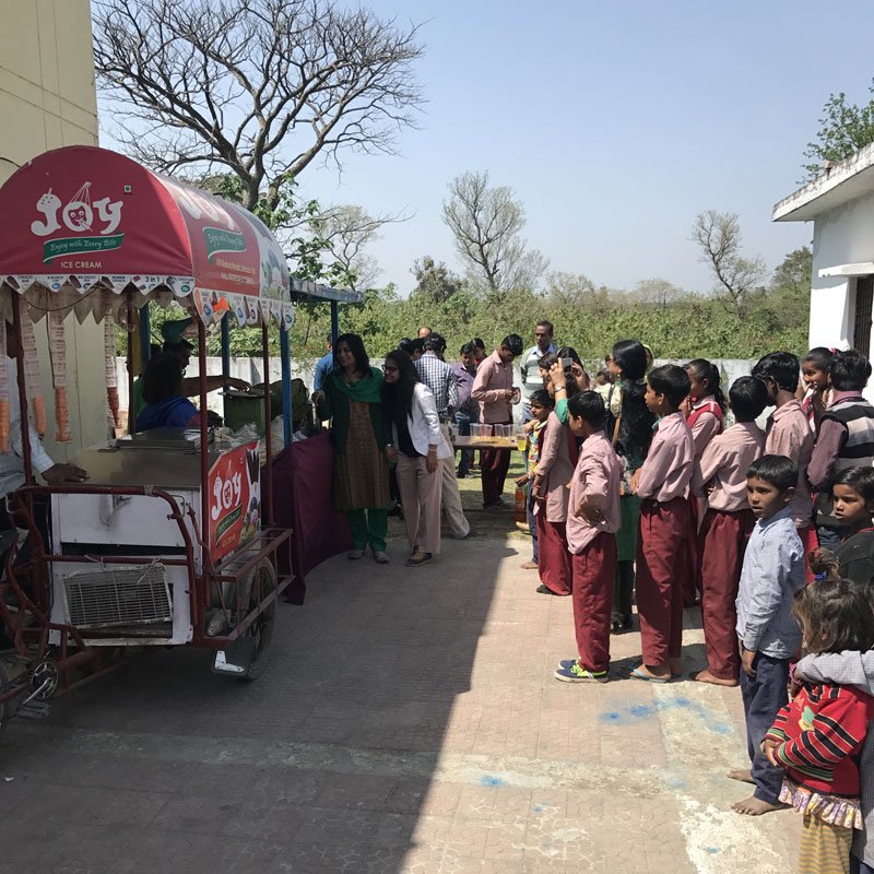 58 children were provided with white canvas school shoes, lunch, ice-creams. A treat to lunch and ice cream bought a big smile on all their faces. A fun filled football match was indeed the highlight of day.