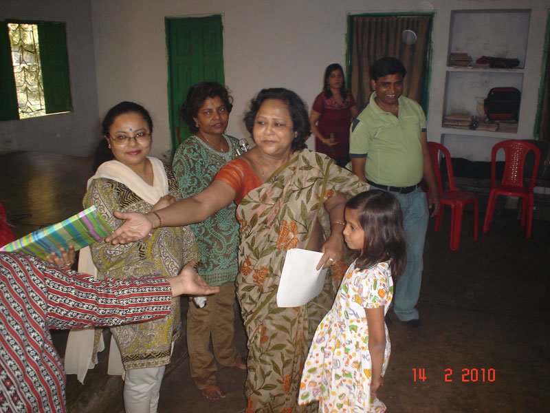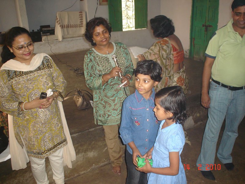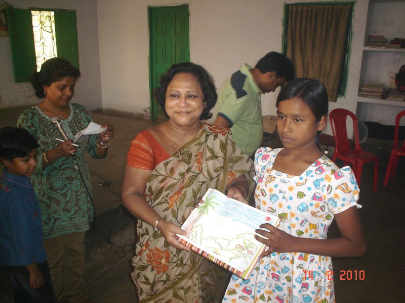 The girls looked ever so pretty in lovely colourful printed frocks We got a huge hall from the School to have our programme for them. We decided to have a Drawing Competition and many of the kids came well prepared with their colours and pencils while we gave them drawing sheets. The kids were split into 2 Groups for the drawing :