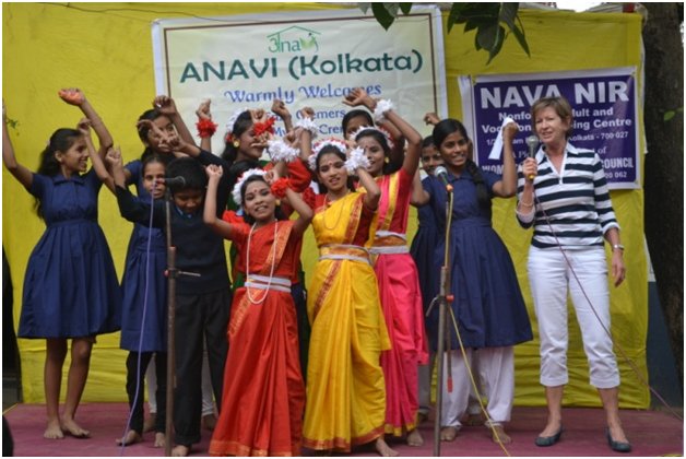 The second half of the day was planned for Nabneer School and old Age home in Chetla. Anavi has been associated with this institute in a big way. This was the first institute that we started out pilot Anavi school project. We have provided this institute with computers and a computer teacher. Regular visits by members to see the progress of the young children is done. Here again a small cultural event was organised by the students. It was very sporting of Mrs Cremers to join the children in singing Do Re Me with the children.