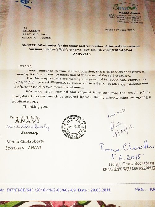 This day is much more special than that - For Anavi definitely, but more so for this institute in southern Kolkata. On this day we have committed ourselves to better the lives of the girls at Sarsuna home. We have committed ourselves to a significant change to make a better world for these children who are the future. The room repairs will be followed by setting up of computers and beginning of computer classes for the girls. The total project will be set up by Anavi.