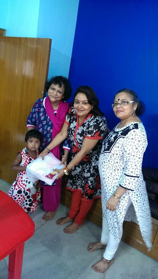 Durga puja is the most important festival in West Bengal. Anavi in its endearing way celebrated this festival with the residents of Apon Ghar. The ladies were the chief guests at Lake Surbojonin Durgautsav. They were warmly welcomed by the puja committee members which included Bangla film star Jishu Sengupta. They were entertained by young children who danced and sang for them. The ladies were then treated to sumptuous meal. They had a memorable evening.