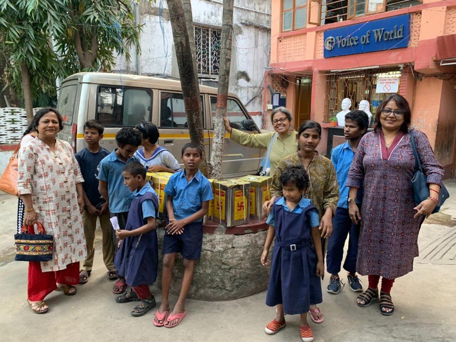 A visit to Voice of World was undertaken to provide the monthly supply of 75 litres of mustard oil.