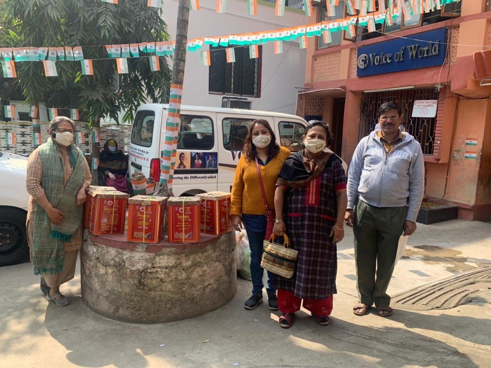 Anavi members visited the institute in January to give the monthly supply of 75 litres of mustard oil. At the premises in Behala, Voice of World runs a primary school. The school roof and structure were badly damaged during the last year's cyclone, Amphan which created havoc in Kolkata. Voice of World has managed to get the roof repaired and are keen to start classes there.
