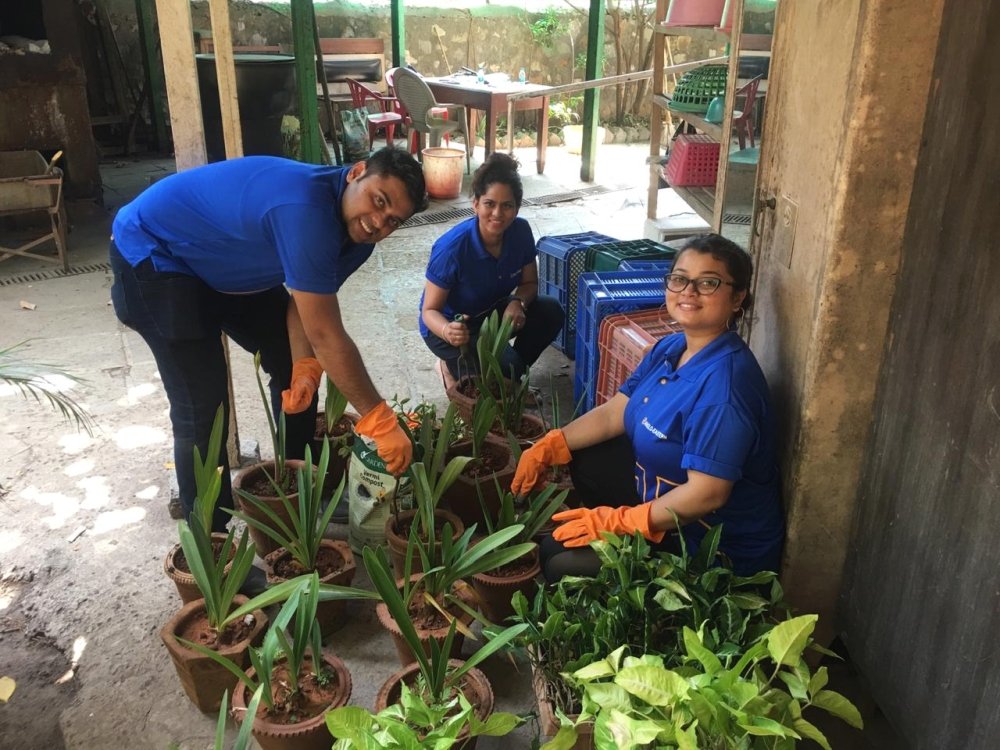 The Ardmore reps arrived in 2 batches, one at 13:30 hrs while the other at 14:15 hrs. The owners dynamically participated in activities like laundry, chopping of vegetables and gardening with a good sense of humour. Later on, they enjoyed coconut daab along with the tender coconut meat arranged for them as refreshments. All of these activities witnessed a true sense of team work among the owners and ANAVI volunteers as each one identified and took up responsibilities voluntarily.